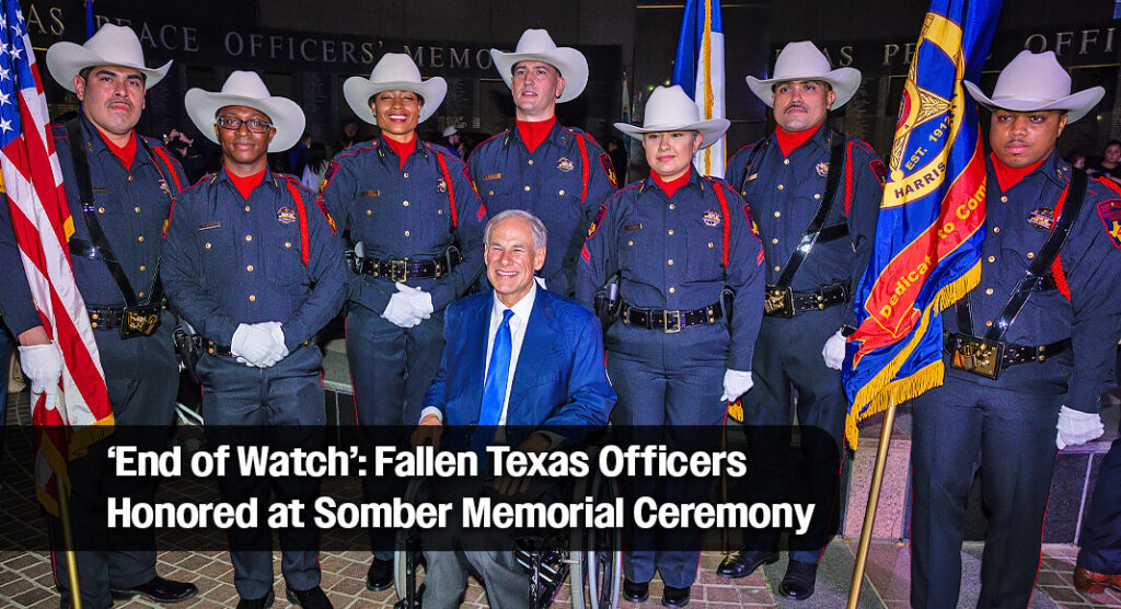 Texas Border Business AUSTIN — El gobernador Greg Abbott ofreció el discurso principal en la Ceremonia Conmemorativa de Oficiales de Paz de Texas en honor a los hombres y mujeres heroicos que perdieron la vida en cumplimiento del deber. El gobernador otorgó la Medalla de Honor de Texas a un miembro de la familia de cada uno de los 25 oficiales reconocidos. Vea la galería a continuación para más detalles.
