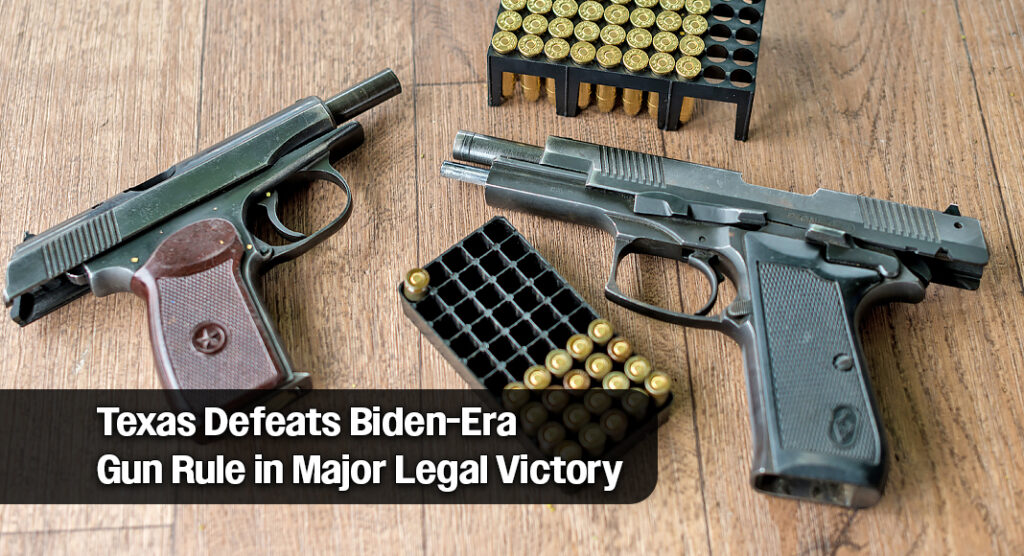 El Fiscal General Ken Paxton logró una victoria legal histórica para los propietarios de armas, manteniendo una orden judicial que impidió la aplicación de una norma de la Administración Biden emitida por la Oficina de Alcohol, Tabaco, Armas de Fuego y Explosivos (ATF), que buscaba violar ilegalmente el derecho constitucional de los estadounidenses a comprar y vender armas de fuego de manera privada.
