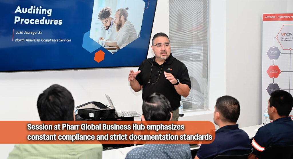 Una sesión de capacitación, patrocinada por IS Compliance LLC DOT Consulting Service en colaboración con North American Compliance Services, reunió a participantes de la industria del transporte el 23 de abril para una capacitación sobre auditorías DOT y una actualización de cumplimiento en el Pharr Global Business Hub. La publicación sobre IS Compliance LLC DOT Consulting Service organizando capacitación sobre auditorías DOT en Pharr apareció originalmente en Texas Border Business.