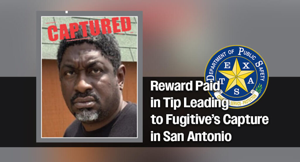 Seguridad PúblicaRecompensa Pagada por Información que Condujo a la Captura de un Fugitivo en San Antonio